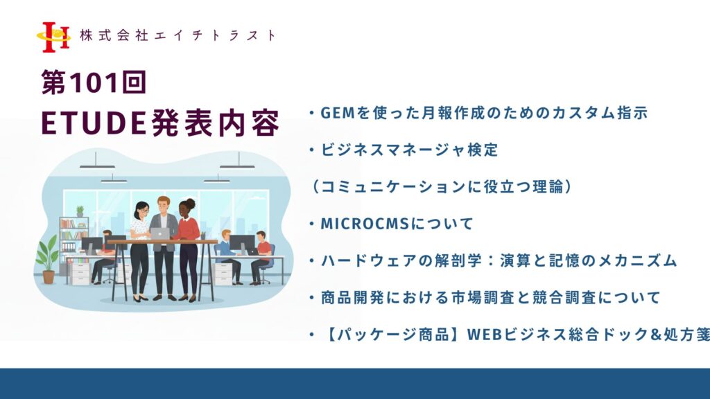 この度、弊社の「ETUDE(社内研修)」の第101回を開催いたしましたので、ご報告申し上げます