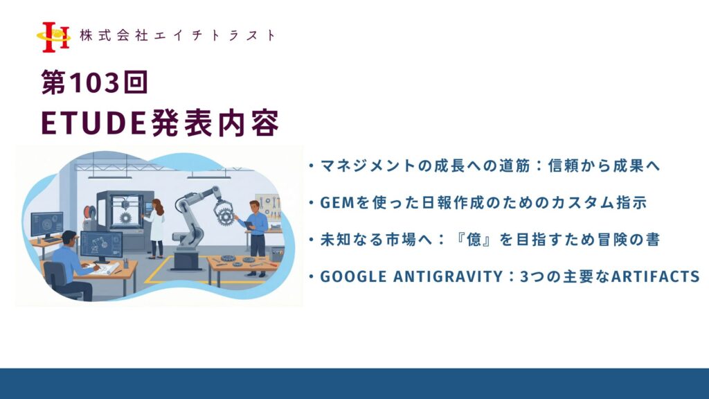 この度、弊社の「ETUDE(社内研修)」の第103回を開催いたしましたので、ご報告申し上げます